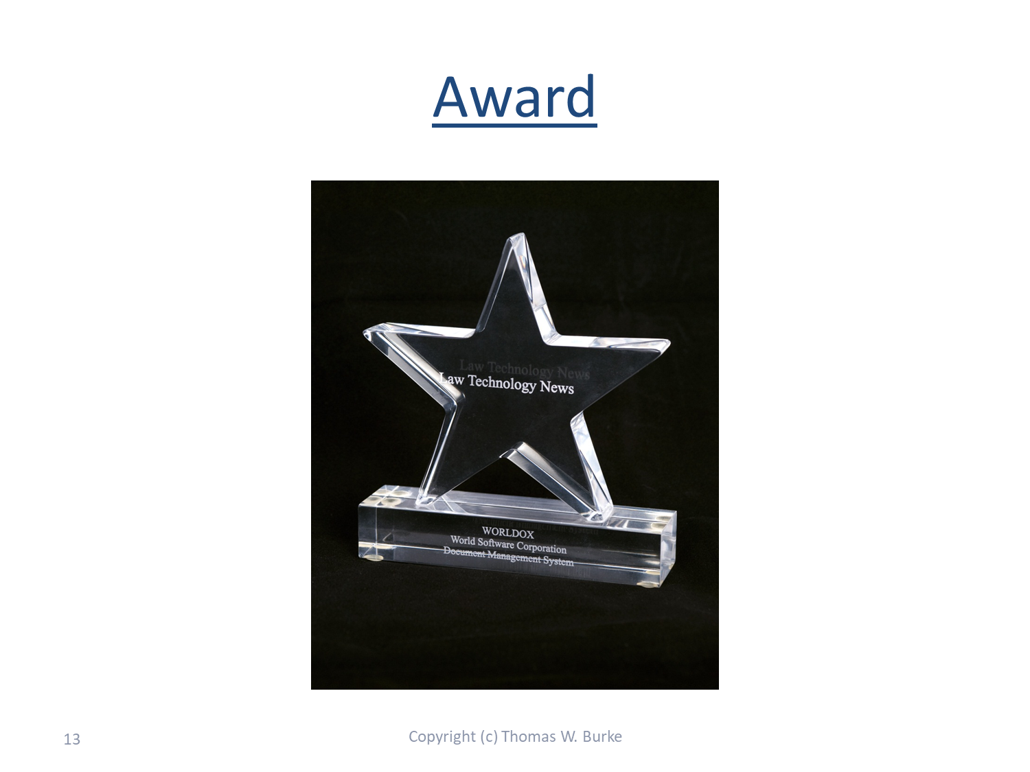 In 2003 Worldox won the first of many most favorite Document Management System awards from "Law Technology News".